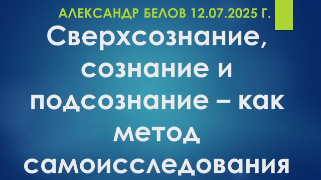 Сверхсознание, сознание и подсознание – как метод самоисследования. Александр Белов 12.07.2025 г.