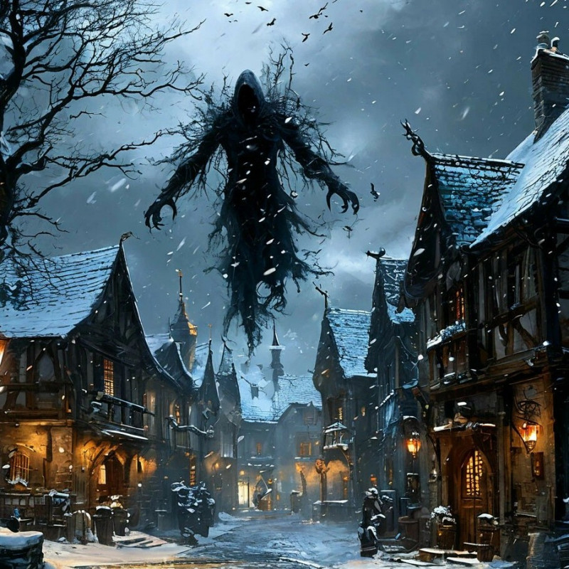 …Зимний день как оборотень начинал перекидываться в вечер. Сизые сумерки сгущались над Вилланом. Ни одно окно не светилось, ни над одной из труб не поднималась струйка дыма. Сбросивший обманную личину город был мертв, и смерть бродила по его улицам, хищная и алчущая. Тьму вокруг немного рассеивало только синее свечение амулета отца Флориана, который он повесил себе на шею, но от этого мрак казался еще темней и гуще.