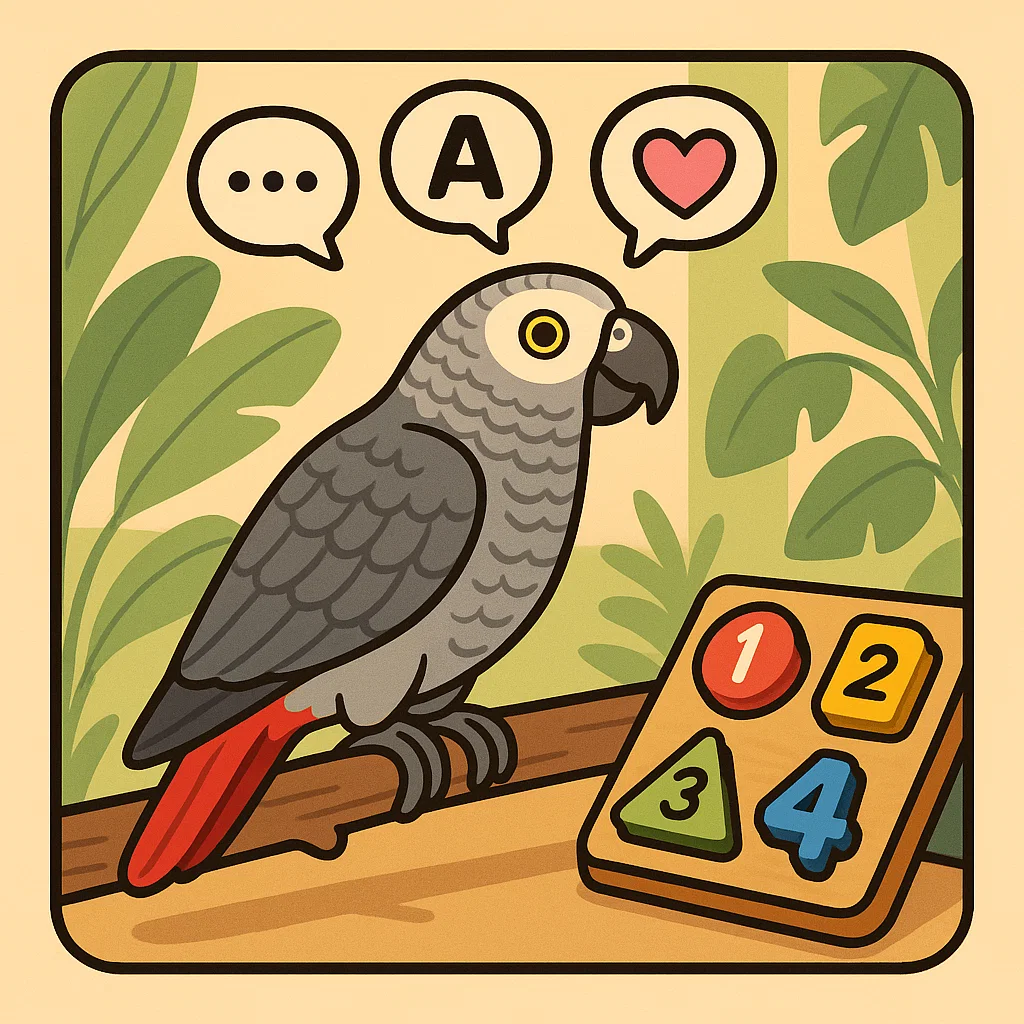 Жако умеют: Пример: если показать попугаю 3 красных кубика и спросить: “Сколько красных?”, он отвечает “три”. Жако умеют: Эти способности — основа логического мышления, характерного для детей 3–5 лет. Жако — социальные и чувствительные птицы. Они: Алекс однажды увидел себя в зеркале и сказал: “Ты попугай”, а потом, указывая на наблюдателя,