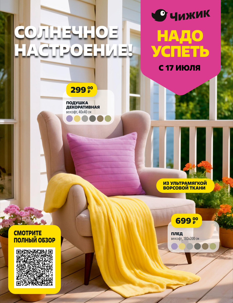 Первое впечатление было связано именно с обложкой — чуть-чуть сердце екнуло, уж больно соблазнительно выглядело тамошнее креслице. Но потом присмотрелась внимательней: оказывается, на самом деле каталог приглашает полюбоваться новой коллекцией декоративных подушек и яркими акцентными пледиками!