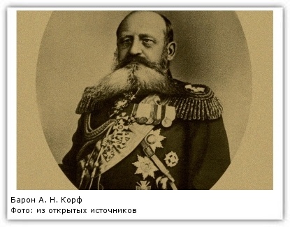 Дальний Восток 10 июля. "Этот день в истории". А.Н. Корф родился в г. Либава (ныне г. Лиепая, Латвия) и рано лишился родителей. Воспитывался в семье родственника, барона Модеста Андреевича Корфа. В 1848 г. окончил Пажеский корпус. Службу начал в 1849 г. в чине прапорщика лейб-гвардии Преображенского полка. В 1852 г. произведен в подпоручики, в 1854 г. — в поручики, в 1855 г. — в штабс-капитаны. После производства в 1861 г. в полковники — начальник Стрелковой офицерской роты, с 1865 — командир 99-го пехотного Ивангородского полка. В 1867 г. в звании генерал-майора утвержден в должности начальника штаба Рижского военного округа. С 1869 г. командовал лейб-гвардейским Литовским полком, с 1873 г. — командир 1-й бригады 3-й гвардейской пехотной дивизии (Варшава), с 1874 г. — командующий 34-й пехотной дивизией. В 1878 г. произведен в генерал-лейтенанты, с 1879 г. — командир 13-й пехотной дивизии и генерал-адъютант. В 1884 г. Корф был назначен Приамурским генерал-губернатором и командующим вой