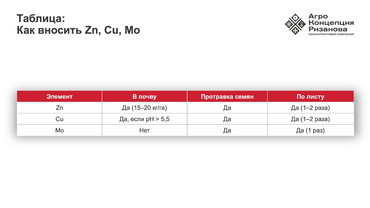 Дефицит цинка, меди и молибдена — частая причина снижения урожайности. Но как внести микроэлементы так, чтобы они работали не 5 дней, а весь сезон? Рассказываем, в какой форме, когда и как правильно применять Zn, Cu и Mo. Листовая подкормка микроэлементами (внекорневое питание) даёт временный эффект — максимум на 5–10 дней. Потом растения снова испытывают дефицит. Чтобы питание было стабильным, микроэлементы нужно вносить в почву. Это обеспечивает доступность питательных веществ на весь сезон и даже дольше. Цинк нужен, если выполняется хотя бы одно из условий: Дополнительно цинк можно внести: Если в почве низкое содержание меди, действуйте так: Используйте молибденовокислый аммоний или готовые препараты. Из книги Самсоновой вы узнаете: Скачать книгу можно в нашем телеграм-канале. Если вы только начинаете или работаете на арендованной земле — используйте протравку семян и листовые подкормки. Это безопаснее и дешевле. Если земля ваша и вы думаете стратегически — вносите микроэлементы в