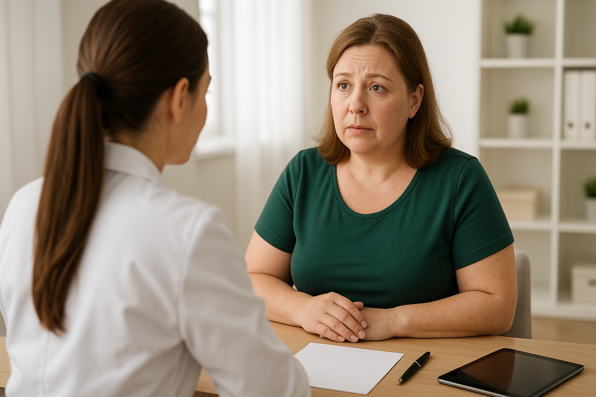 Пациентка — 50+, лишний вес — около 15 кг, подвижность ограничена, но официальных диагнозов пока нет. Вроде всё «нормально». Только вот боль.