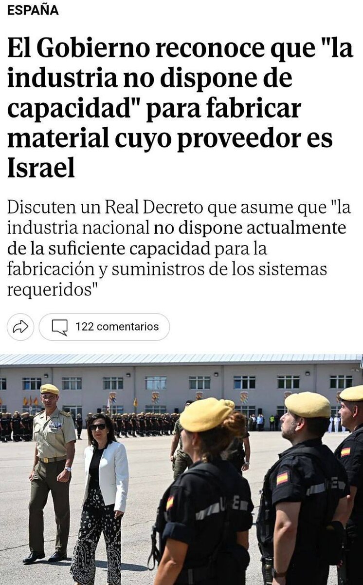 Правительство Испании признало, что «промышленность не располагает мощностями» для производства материалов, поставщиком которых является Израиль