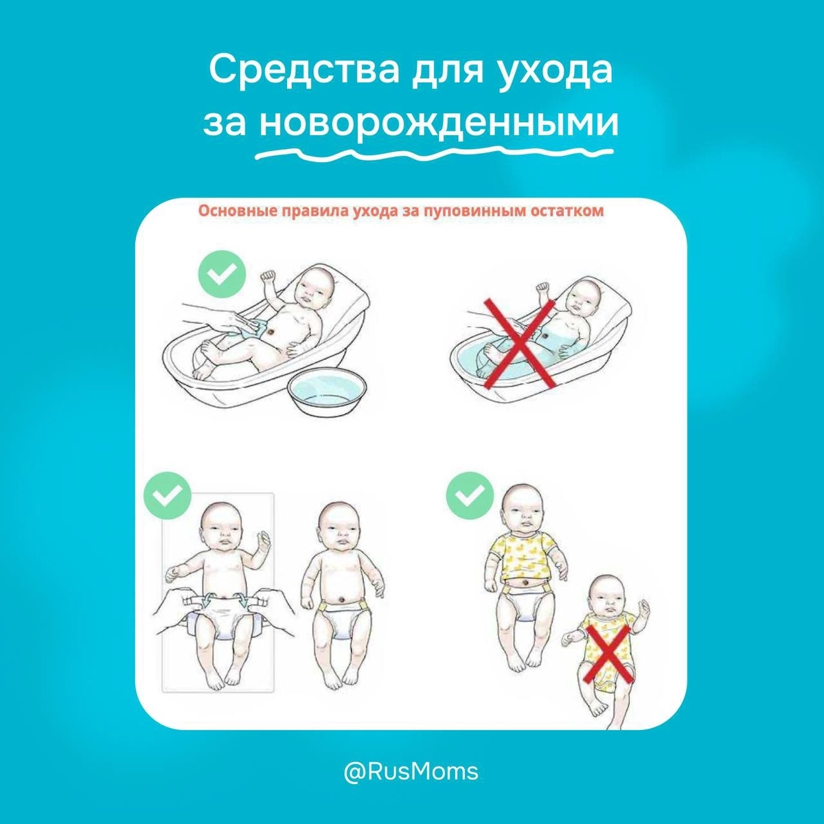 Вы в ожидании малыша, либо совсем недавно стали мамой? Примите поздравления и обязательно прочитайте этот пост! Уход за пуповинным остатком — то, что должна знать каждая мама. Пока малыш находится у вас в животике, вас связывает пуповина. Но после рождения ребенка ее пересекают и накладывают зажим. Вскоре зажим отпадает, остается так называемый пуповинный остаток, за которым важно правильно ухаживать, чтобы не было осложнений. Вот основные правила по уходу за пуповинным остатком новорожденного ребенка: 📌МЫТЬ СВОИ РУЧКИ Всегда мойте руки перед тем, как прикасаться к пуповинному остатку и области пупка малыша. Это поможет предотвратить попадание инфекции. Вы же не хотите наградить кроху своими бациллами?)) 📌СУХОЙ И ЧИСТЫЙ Пуповинный остаток должен быть всегда сухим и чистым. Следите, чтобы на него не попадало содержимое подгузника. Если загрязнение произошло — аккуратно промойте пупок тёплой проточной водой и просушите чистой ватой, марлей или мягким полотенцем. Не нужно ничем до