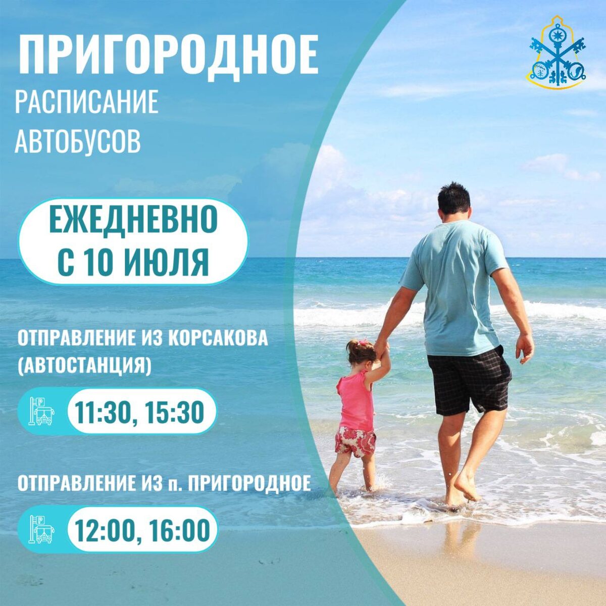 🔤🔤🔤🔤🔤 🔤🔤🔤🔤🔤🔤🔤🔤🔤🔤❗️ По просьбе граждан переносится время начала движения первого утреннего рейса до места отдыха у воды в районе бывшего п. Пригородного с 10:30 на 11:30. ❗️Новое расписание начнет действовать сегодня, с 10 июля! Каждый день, вне зависимости от погоды, до бывшего п. Пригородного два раза в день будет осуществляться движение общественного транспорта. ➡️Время отправления от автостанции: 🔹11:30, 🔹15:30. ⬅️Из бывшего п. Пригородного отправление автобуса в сторону г. Корсакова: 🔹12:00, 🔹16:00. 🚍Также напоминаем, что до места отдыха у воды можно доехать на автобусе, осуществляющем движение по маршруту 122 Корсаков - Озерское. ➡️В рабочие дни отправление от автостанции: 🔹07:00, 🔹13:00, 🔹17:00. ⬅️Из с. Озёрского: 🔹08:30, 🔹14:30, 🔹18:30. ➡️В выходные дни движение по указанному маршруту начинается от автостанции: 🔹08:00, 🔹13:00, 🔹17:00. ⬅️Из с. Озёрского: 🔹09:30, 🔹14:30, 🔹18:30.