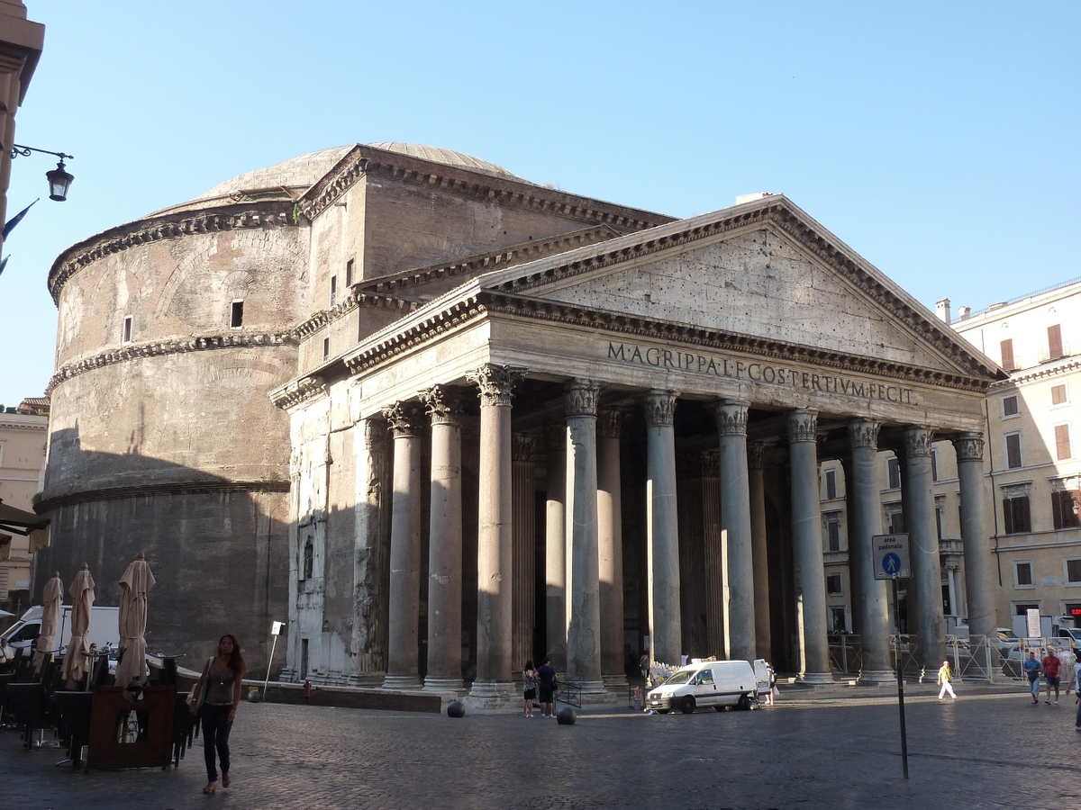Пантеон — уникальный образец древнеримской архитектуры, демонстрирующий новаторство и мастерство инженеров того времени. Его конструкция основана на широком применении бетона. Впервые в истории зодчества был возведён купол диаметром 43,3 метра, который и по сей день остаётся одним из крупнейших в мире. Материал бетона позволял создавать огромные монолитные пространства без внутренних опор, что обеспечило необычайную лёгкость и прочность сооружения.