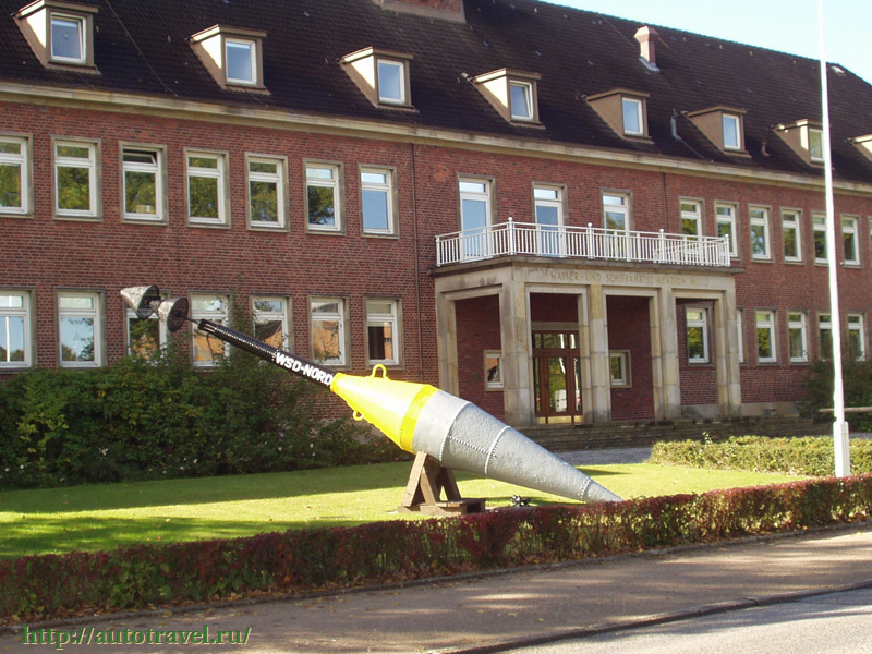 Фонарь лайнера «фон Гумбольдт» установлен у входа в музей и служит своеобразным символом связи Киля с большими морскими линиями. Этот мощный световой прибор использовался на пассажирском судне для освещения и обозначения лайнера в ночное время. Фонарь сохранил оригинальную металлическую конструкцию и стеклянные элементы, демонстрируя уровень мастерства судостроения и технологий того периода.
