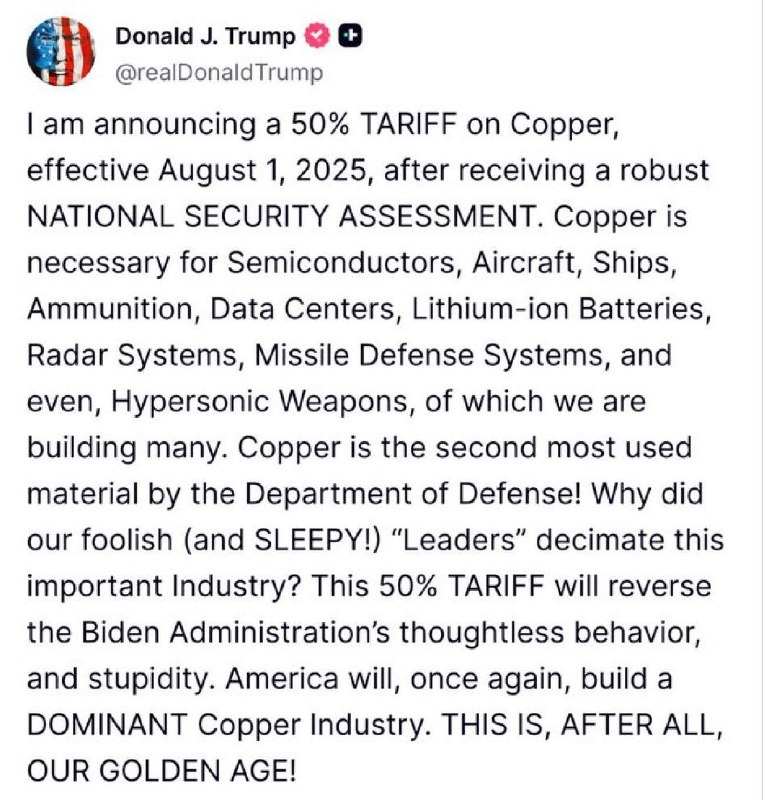 Trump’s 50% COPPER tariffs over ‘NATIONAL SECURITY’
