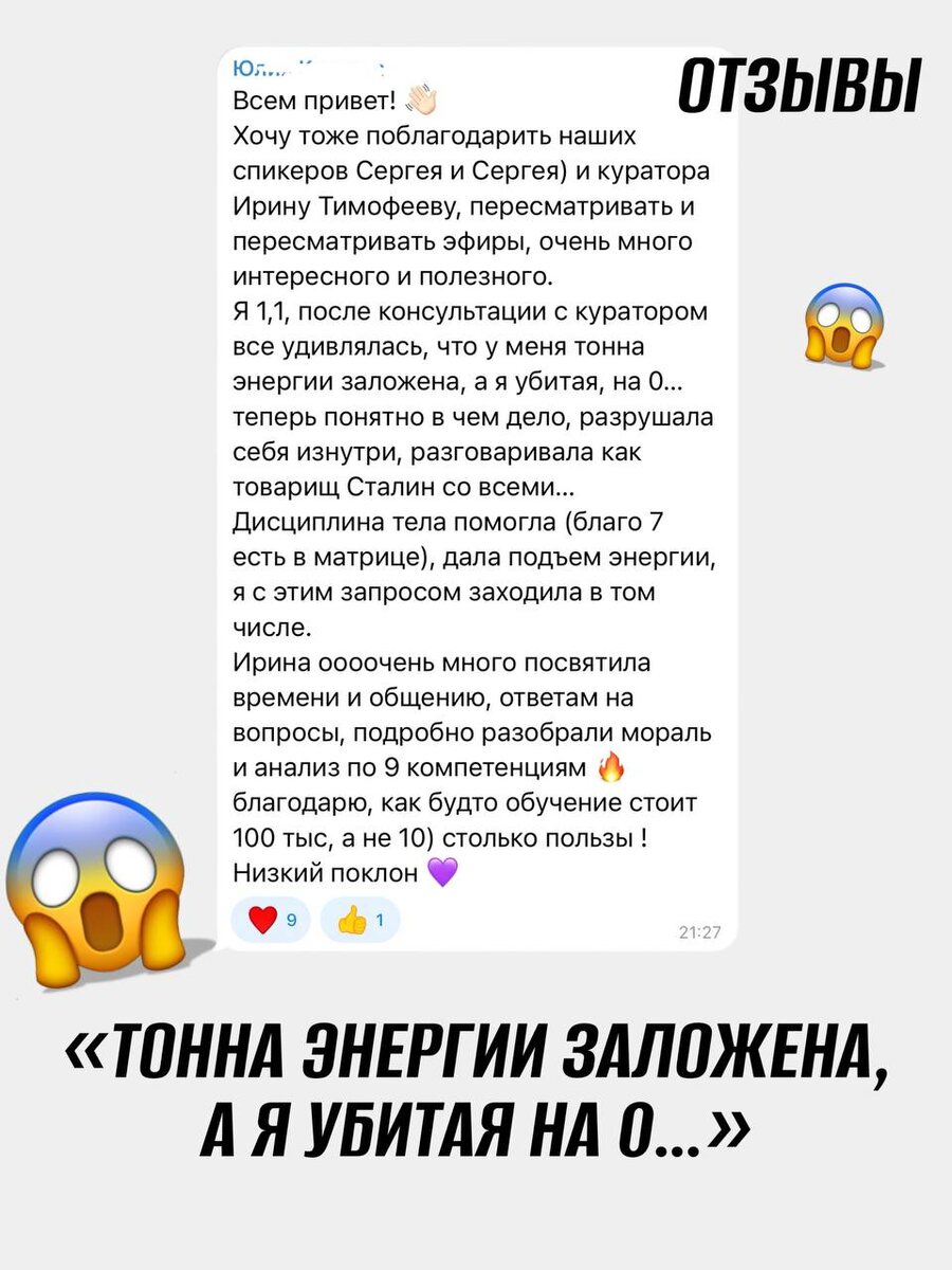 Отзывы о Самокоучинге, которые говорят сами за себя: ✅ «Тонна энергии заложена, а я убитая на 0… Теперь понятно, в чём дело. Дисциплина тела дала подъём, энергия вернулась.» ✅ «Отдельную благодарность выражаю куратору — всё структурировано, разобрали мораль, компетенции, формулу успеха. Сложное стало понятным.» ✅ «Многое стало на свои места. Была тревожность, непонимание себя. Сейчас — ясность, зачем и почему, появилась лёгкость.» ✅ «Поняла свои недостающие линии и как нарабатывать компетенции. В науку Сюцай просто влюбилась!» ✅ «Как будто обучение стоит 100 тысяч, а не 10 — столько пользы!» 📌 Эти отклики — результат глубокой работы через Сюцай, практики самокоучинга и сопровождение опытных кураторов. Если вы хотите так же: — вернуть свою энергию — понять себя и выйти из внутреннего хаоса — выстроить стратегию движения дальше Самокоучинг 7.0 стартует 14 июля — присоединяйтесь, пока открыта регистрация: 👉 https://t.me/+GX_Q22U9zkpmOWYy