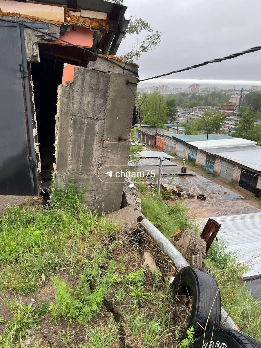 В кооперативе №28 в районе Баргузинской дождевая вода размыла бокс. Внутри машина, хозяин в местном чате не отзывается. Люди переживают, что часть постройки скоро сорвется вниз.
