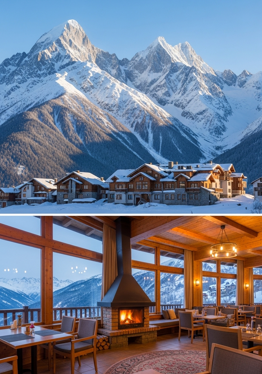 Просторные номера с видом на горы оснащены мраморными ванными, системами климат-контроля и премиальным текстилем. Изысканный ресторан предлагает блюда высокой кухни, а уютный лобби-бар — широкий выбор напитков у камина. Спа-центр с бассейном и финской сауной завершает картину идального горного отдыха.