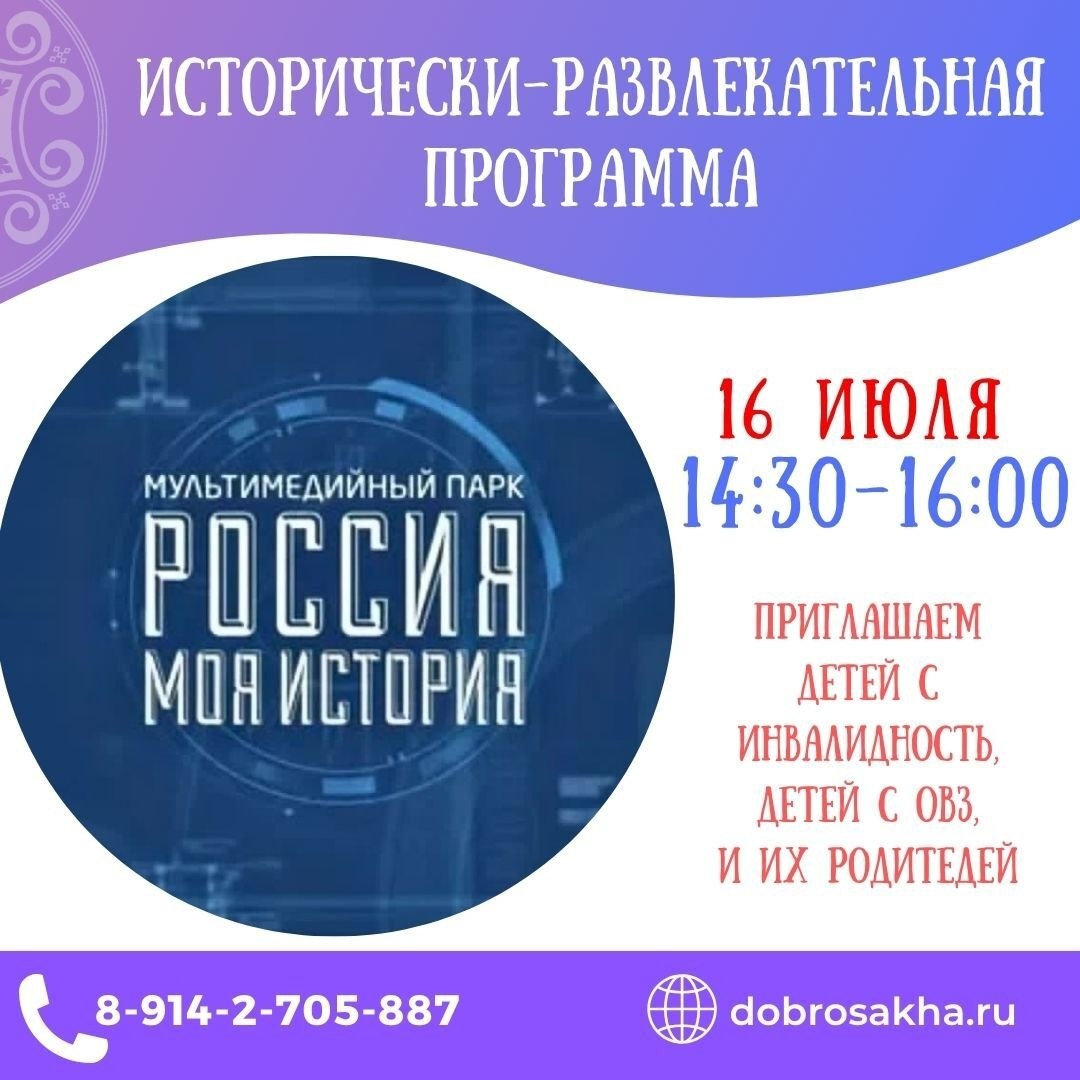 🤩Благотворительный фонд «Харысхал» приглашает детей с инвалидностью , детей с ОВЗ и их родителей в Исторический парк «Россия — Моя история» для участия в Исторически-развлекательной программе и обогащения своих воспоминаний о лете!