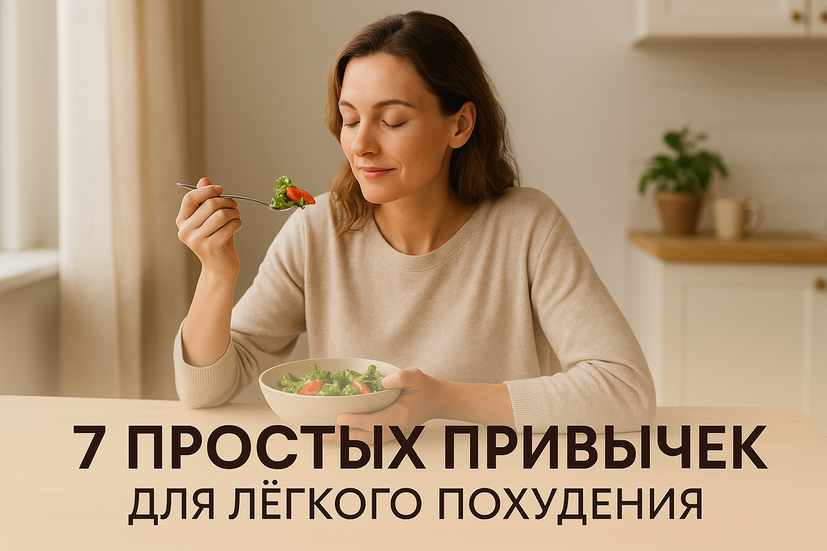 А 7 привычек, которые встраиваются в жизнь мягко – как любимый плед, а не как жёсткий корсет. Вот они мои рабочие привычки. Проверенные. Без обещаний минус 10 кг за 3 дня. Но с очень реальным шансом начать наконец двигаться к телу, в котором легко жить. Раньше могла перекусить, стоя у раковины. Или доесть за ребёнком. Или утащить кусочек, пока готовлю.