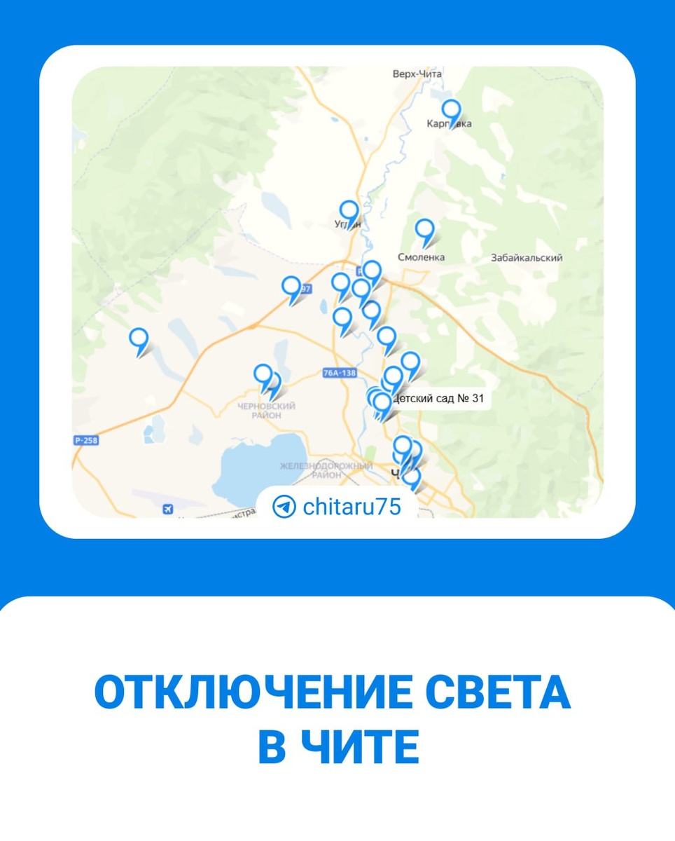 Без света в Чите десятки домов в разных точках города. В «Читаэнерго» говорили, что аварийные бригады уже работают. Если у вас все еще нет света, напишите в комментариях.⬇️ Подробная карта отключения — здесь. 🟦 Подписаться | Предложить новость