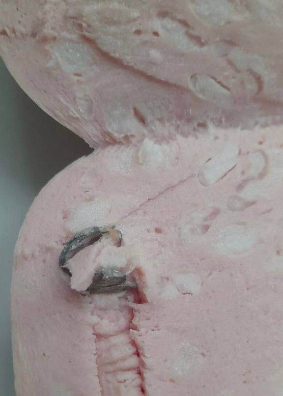 Металлический предмет жительница города обнаружила в колбасе «Русская» уфимского мясокомбината и разместила фото в соцсетях.