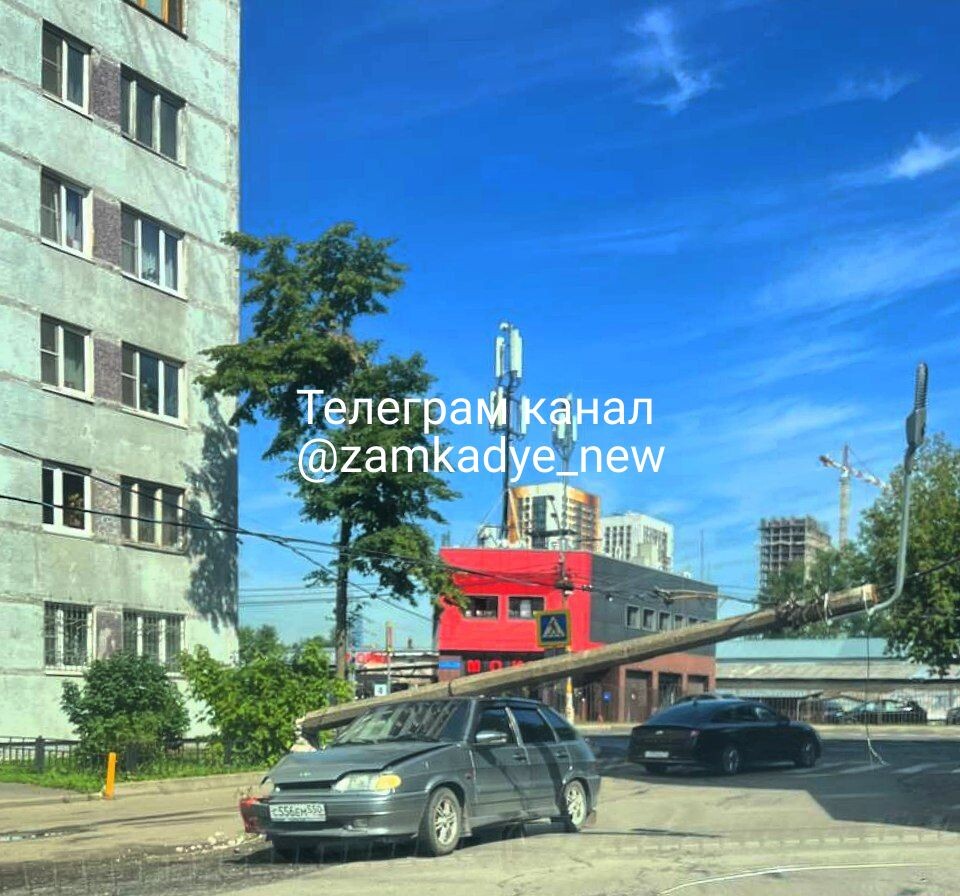 Недоброе утро в Мытищах на улице Академика Каргина. Фонарный столб упал на авто - сообщает подписчица.