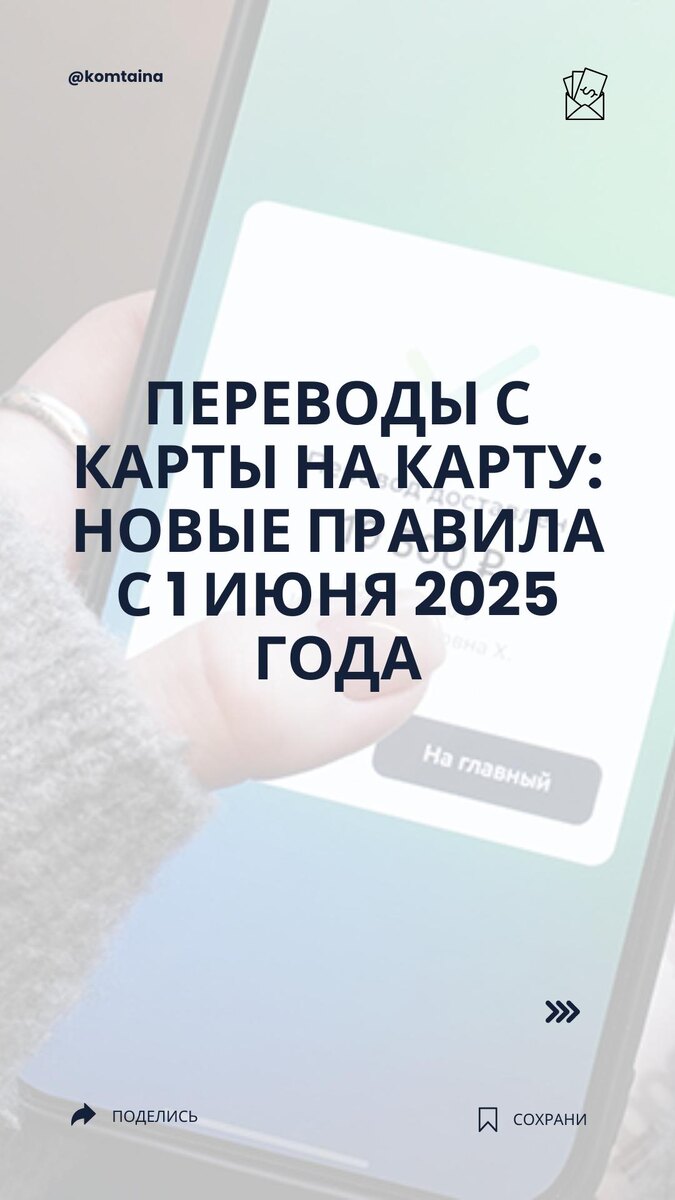 💳 Переводы с карты на карту: новые правила с 1 июня 2025 года Волна возмущения давно поднялась и до сих пор не стихает. Особенно это ярко вспыхивает, когда обсуждается очередной случай «случайной» блокировки после перевода денег. Просто так ничего не происходит и потому давайте закрепим - перед вами памятка с правилами перевода с карты на карту. 💳 Сохраняйте, отправляйте коллегам и родственникам - под эти правила попадают буквально все. p.s.: сегодня еще выпустим ответы на частые вопросы с примерами. @komtaina