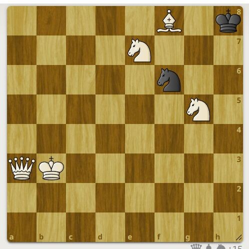 Автор задачи А. Дезекцер, 1956 год. На доске три коня. Белые начинают и ставят мат в 2 хода. Поддержи автора. Первый верный ход смотрите в галерее. Другая задача тут
