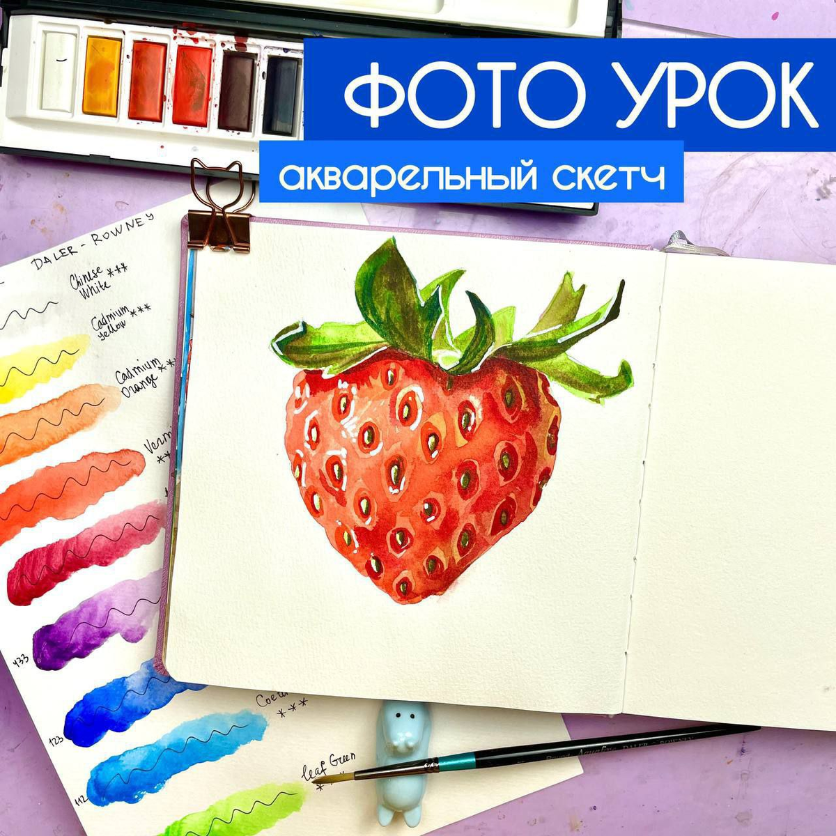 🍓 Начинаем новый творческий месяц с клубничного настроения! И для этого в нашей коллекции есть замечательный фото урок 💫 Давайте вместе нарисуем этот сочный скетч акварелью!