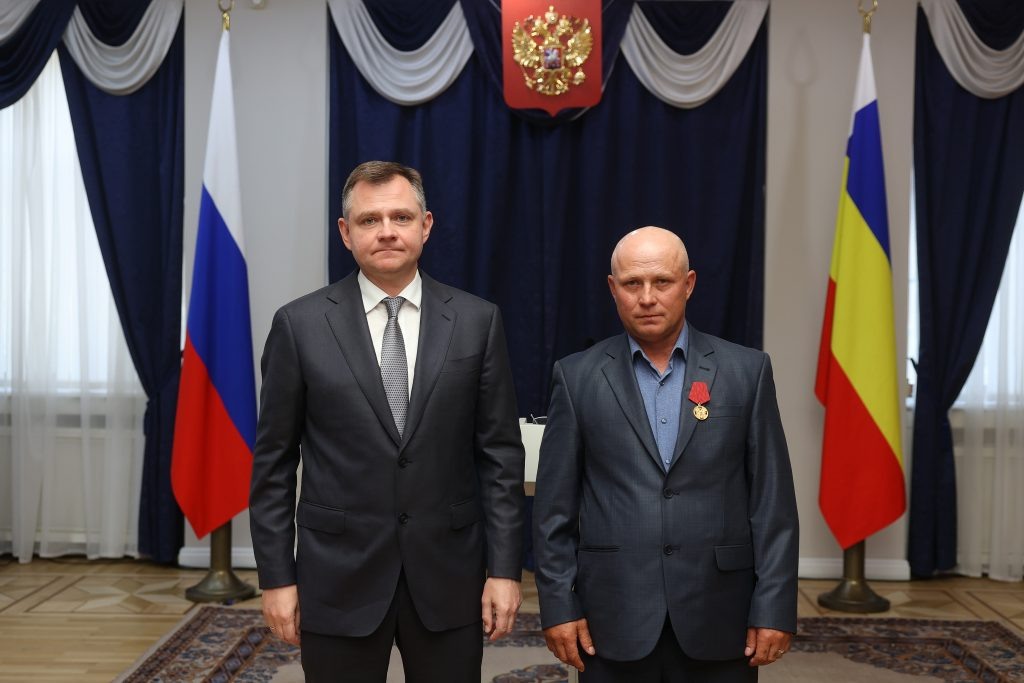 11 июня, в преддверии Дня России, глава Донского региона Юрий Борисович Слюсарь вручил награды лучшим представителям разных профессий и специальностей. Торжественная церемония состоялась в Ростовском общественном собрании. Среди тех, кому вручались высокие награды, был и представитель Чертковского района. За заслуги в области сельского хозяйства и многолетнюю добросовестную работу МЕДАЛЬЮ ОРДЕНА «ЗА ЗАСЛУГИ ПЕРЕД ОТЕЧЕСТВОМ» I СТЕПЕНИ был награжден Алексей Федорович Кабак – тракторист-машинист сельскохозяйственного производства сельскохозяйственного производственного кооператива (колхоза) «Мир». А.Ф. Кабак работает в сельхозпроизводстве 33 года. Все годы он трудится в одном коллективе тракторной бригады сельскохозяйственного производственного кооператива (колхоза) «Мир». В совершенстве владеет теоретическими знаниями и практическими навыками по эксплуатации и техническому обслуживанию сельхозмашин и оборудования. Имея квалификацию тракториста-машиниста 1 класса, Кабак А.Ф. высокопроизв