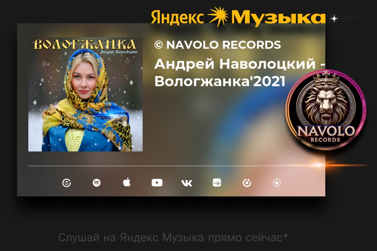 4 марта 2021 года в преддверии прекрасного женского праздника автор-исполнитель Андрей Наволоцкий представил на суд слушателей свою новую песню под названием "Вологжанка". В этой песне рассказывается о случайной встрече, любви с первого взгляда и о расставании.Чудесная история для всех, кто верит в любовь с первого мгновения ,с первой улыбки,с первого прикосновения. Независимый музыкальный лейбл Navolo Records при поддержке компании ONE Rpm представили этот сингл на всех мировых стриминг - площадках и цифровых сервисах ,включая Яндекс Музыка. Ссылка на песню "Вологжанка" Ниже ссылка на всех артистов Navolo Records: