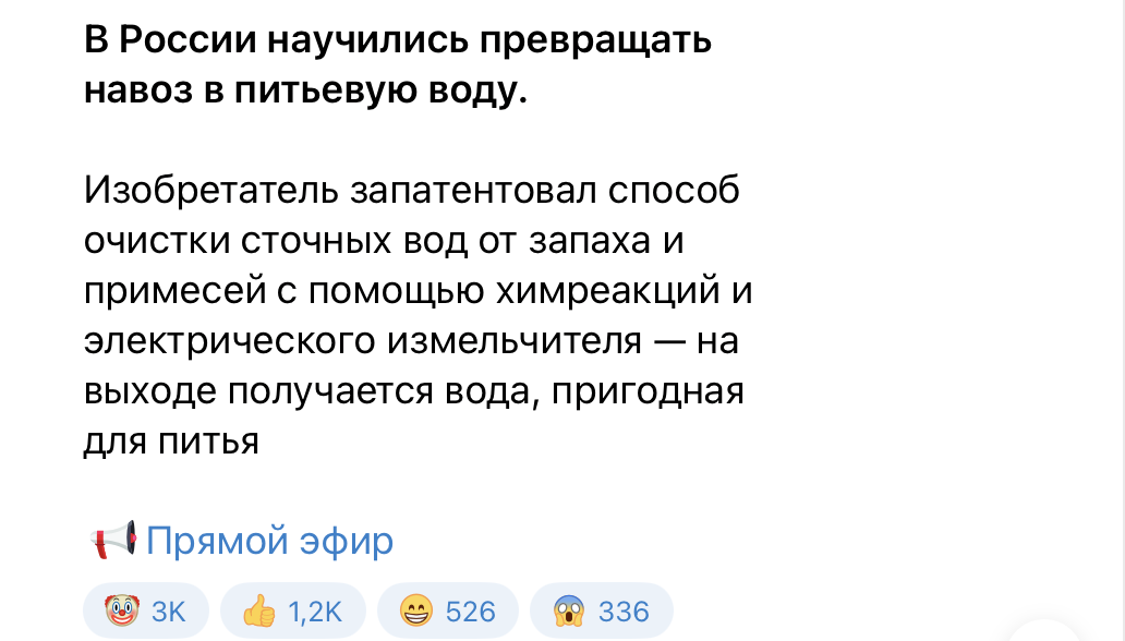 Открывая с утра новости и читаю: Вот, думаю, круто как. Ведь теперь... Стоп! А что это за реакции к посту? 3000 знаков клоуна, 500 насмешек и 300 ужасающихся смайликов. Народ не оценил. И это, в общем-то, можно понять – люди подумали, что теперь эта технология будет вводиться в России. Однако смею предположить, что в России данная технология попросту не будет рентабельной. Намного проще продолжать брать воду просто из реки, озера, скважины или водохранилища, коих у нас бесчисленное множество, чем перестраивать всю систему водоснабжения, ставить какие-то установки, какие-то электрические измельчители, запускать производство химических реагентов в промышленных масштабах и т.д. Россия имеет избыточные запасы пресной воды (за исключением отдельных территорий). А вот где эта технология очень бы пригодилась, так это в Африке и на Ближнем Востоке. Давайте представим, что подобная новость прозвучала бы где-то в Мали, Нигере или республике Чад. Вместо "клоуновских" смайликов там были бы сплошь