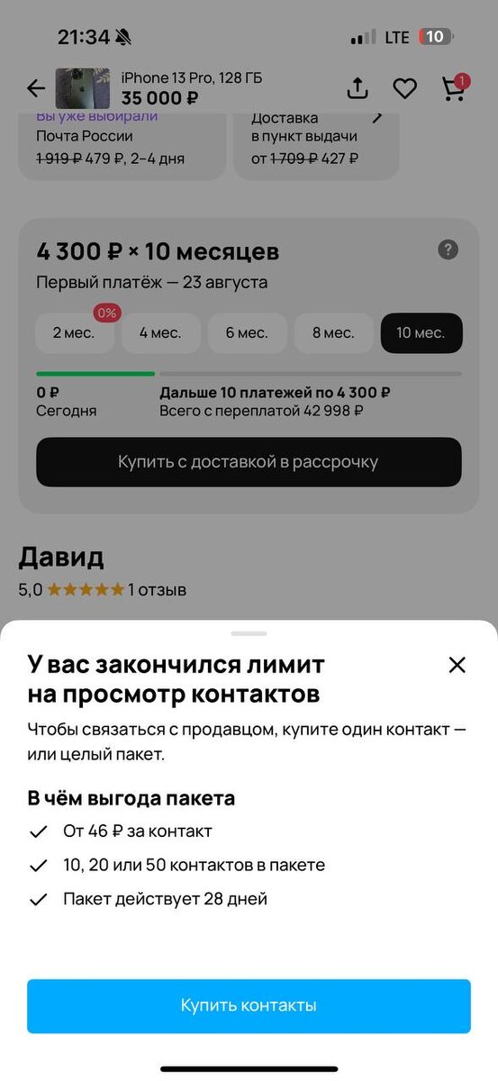 Подпишись, буду выкладывать много интересного С середины июня 2025 года «Авито» ограничивает активных покупателей в категории «Электроника → Смартфоны». Если за неделю вы связались (первый звонок / первое сообщение) больше чем с 20 разными продавцами, кнопки «Позвонить» и «Написать» блокируются, а сервис предлагает купить «пакет контактов». Отсчёт идёт скользящей семидневкой (последние 7 суток). Когда лимит исчерпан, всплывает окно «У вас закончился лимит на просмотр контактов». Важно: пакет «сгорает», если вы не потратили все контакты за 28 дней; перенос на следующий месяц не предусмотрен. «Мы учитываем чаты только тогда, когда вы отправляете сообщение продавцу… Если вы позвонили, а продавец не ответил, контакт считается использованным».