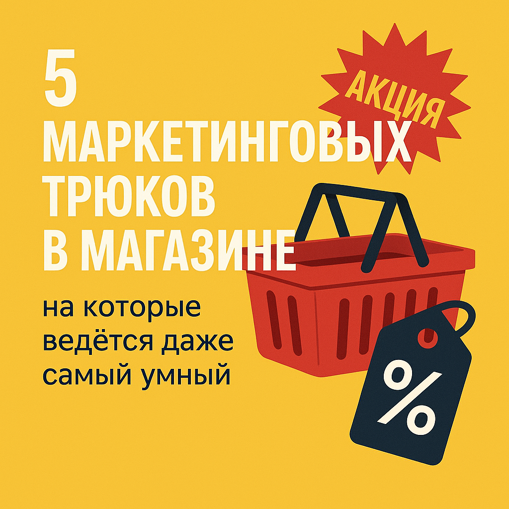 И как не попасться на них Ты идёшь за молоком. Возвращаешься с корзиной на 2500 ₽, тремя шоколадками и свечкой в форме кота. Знакомо? Добро пожаловать в мир магазинных манипуляций. Их цель — чтобы ты купил больше, чем хотел. И чаще всего — это срабатывает. Вот 5 трюков, которые я лично ловил на себе. И теперь делаю иначе. Первое, что ты видишь — вроде бы выгодно. На самом деле это ловушка: тебе создают ощущение «я экономлю», а дальше ты расслабляешься и покупаешь больше обычного. 📌 Как не попасться: Иди по списку. Игнорируй витрины у входа — сначала бери то, зачем пришёл. Часто на ценнике написано: Было 999 ₽, стало 599 ₽