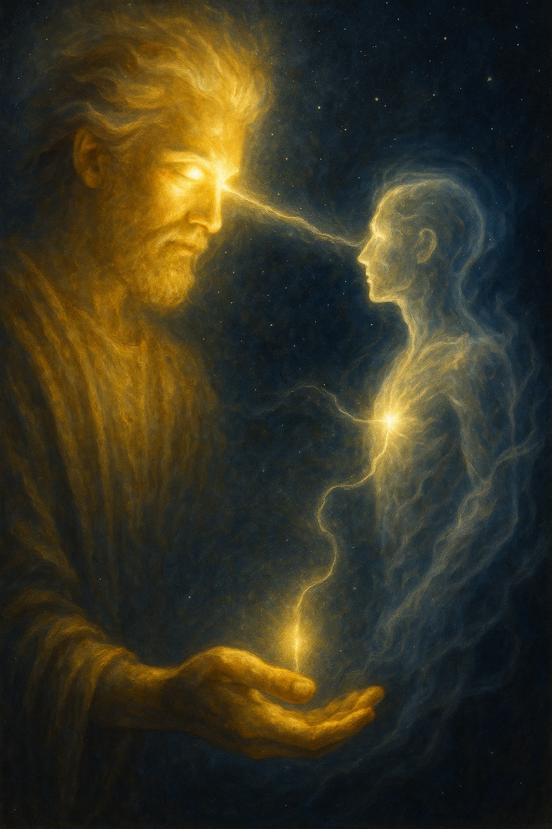 Человек создан по образу и подобию бога (в духовном плане, не телесном) и потому тоже желает творить. Но его творчество, на первый взгляд, попадает в категорию «псевдо». Человек не может дать душу созданной им твари (творению). А бог может. Но…