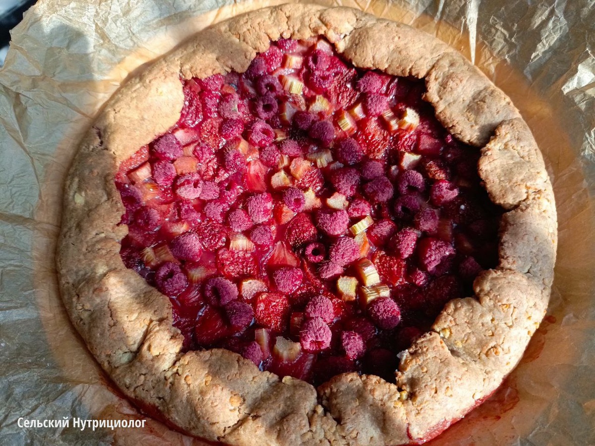 Галета на ржаной муке с клубникой, малиной и ревнем😋