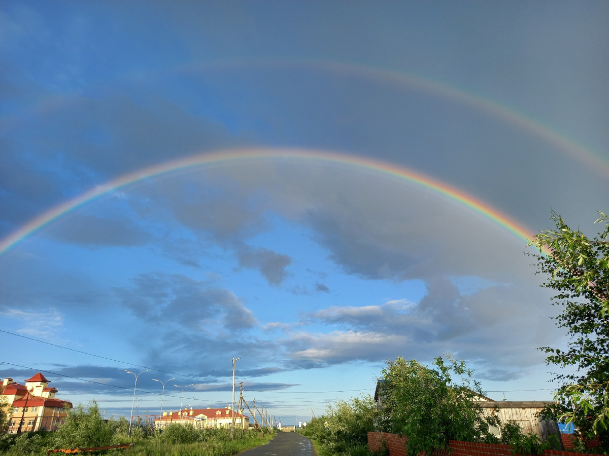 Над ямальским поселком развернулось чудо – двойная радуга озарила небо, окрасив лесотундру в нежные пастельные тона. Это зрелище не могло не вызвать восхищение и размышления, ведь радуга для народов Севера – это не просто красивое атмосферное явление, а символ, наполненный глубоким смыслом и историей. Для многих, увидевших двойную радугу, это был знак удачи. Примета гласит: загадай желание, и оно непременно сбудется! Две арки света, словно мост между реальностью и мечтой, обещают надежду и веру в лучшее.