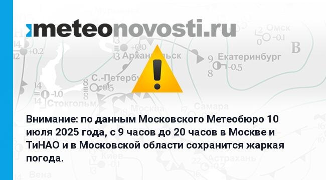 Внимание: по данным Московского Метеобюро 10 июля 2025 года, с 9 часов до 20 часов в Москве и ТиНАО и в Московской области сохранится жаркая