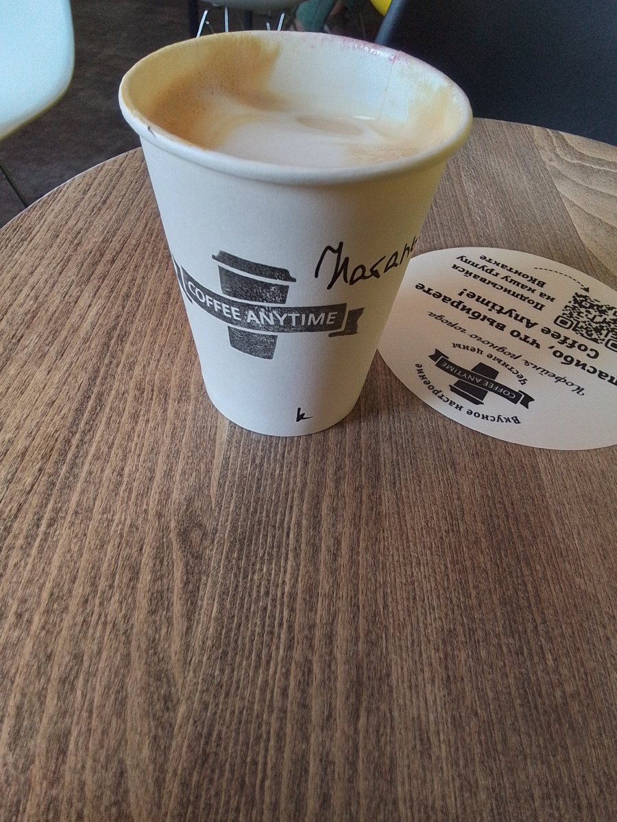Омск - город - миллионник, поэтому, как правило, остановка поезда занимает достаточно времени, чтобы не просто прогуляться по перрону, а забежать за настоящим кофе. Недалеко от вокзала находится одна из кофеен местной сети кофе "Coffee Anytime", что буквально переводится как "кофе в любое время". Нужно только выйти из здания вокзала, пройти привокзальную площадь и вы увидите справа на углу четырехэтажного здания заветную надпись. Кроме того, здесь вы можете заказать не только разные виды кофе, но и купить десерты. Приятно, они упакованы таким образом, чтобы взять с собой. Цены в Омске чуть выше, чем в родной Тюмени, поэтому приготовьтесь за маленький капучино (200 мл) отдать 209 рублей, средний (300 мл) - 239, большой (400 мл) - 259 рублей. При покупке спрашивают ваше имя и затем пишут его на стаканчике, а так же выкрикивают, когда заказ готов. Кофе неплохой, не отдает горечью или кислинкой, но нужно признаться, что и не самый вкусный. Огорчает то, что формат данной кофейни не