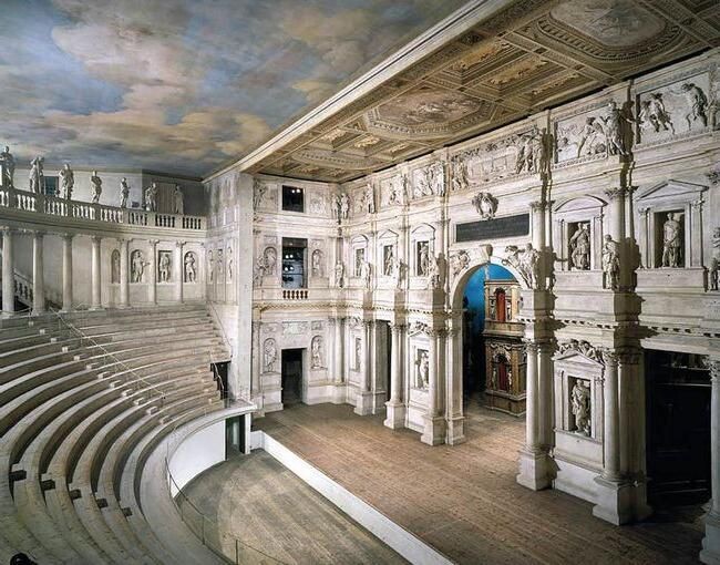 Театр Олимпико в Виченце — важнейшее архитектурное наследие эпохи Возрождения, спроектированное Андреа Палладио в 1580 году. Этот проект стал уникальным воплощением античных театральных традиций в рамках итальянского Возрождения. Сам Палладио стремился к возрождению классической архитектуры и театрального искусства, взяв за образец древнегреческие театроны. Его замысел подготовили члены Академии Олимпика — организации, созданной в 1555 году с целью поддерживать культурные инициативы и возвращать зрителям классическую драматургию. Академия служила центром интеллектуальной жизни, где возрождались древнегреческие комедии и трагедии, благодаря чему возникла потребность в создании соответствующего театрального пространства.