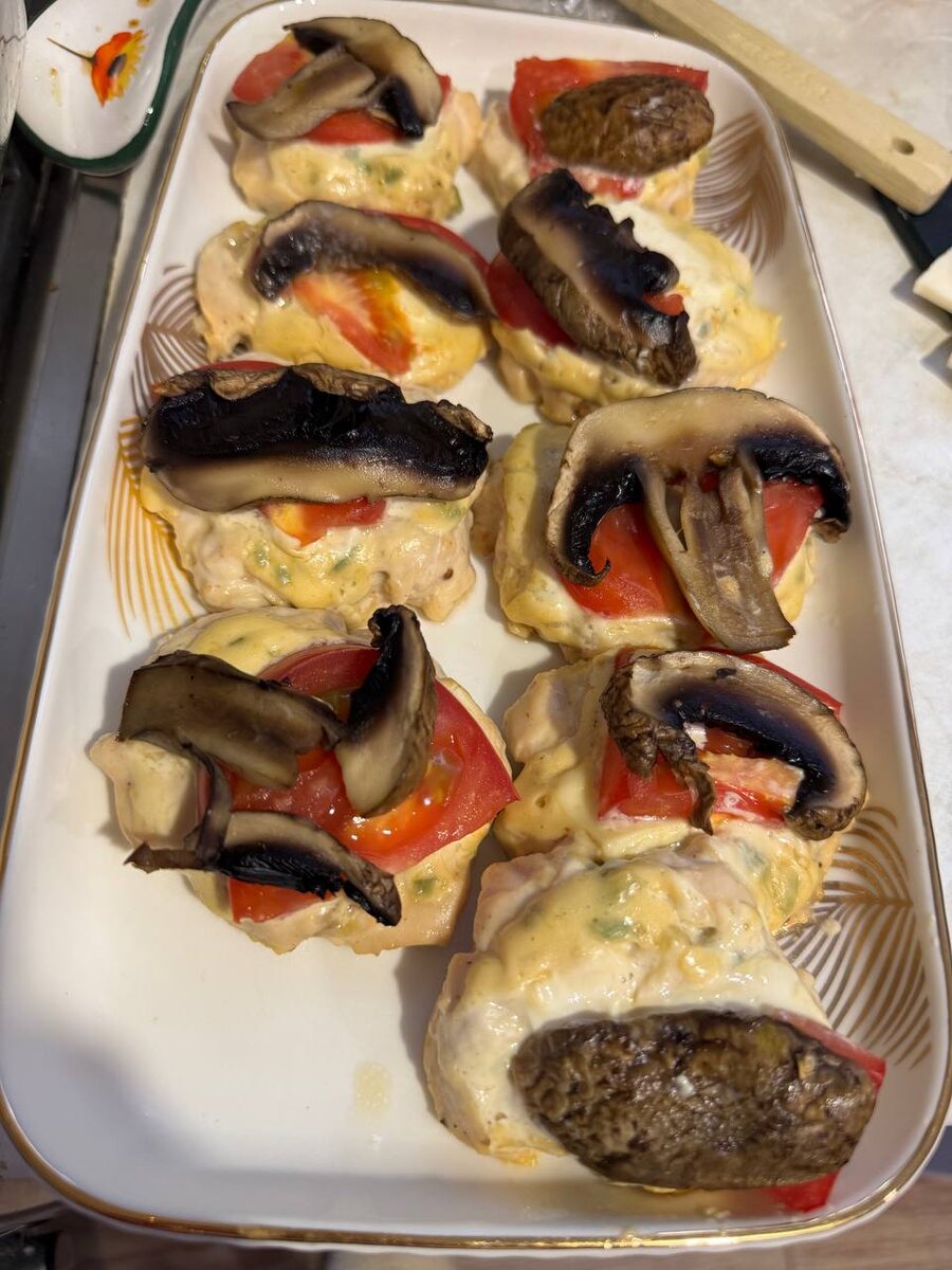 К сожалению, пошаговых фото не будет, так как не думала, что заведу канал. Поэтому кому будет интересно - можете попробовать приготовить. Нам понадобятся: Ингредиенты для маринада будут зависеть от ваших вкусовых предпочтений. Я использовала: 1 столовую ложку майонеза; 1 чайную ложку горчицы; 1 чайную ложку меда; 1 столовую ложку соевого соуса; немного красного перца (примерно 1/2 чайной ложки); 1 чайную ложку соли (аккуратнее с солью, потому что можно легко пересолить из-за добавления соевого соуса в маринад и соус к котлетам) и 150 мл газированной воды Ингредиенты для соуса тоже будут зависеть от ваших предпочтений. Я использовала: 2 столовые ложки майонеза; 3 зубчика чеснока; 1 столовую ложку кисло-сладкого соуса; 1,5 столовые ложки соевого соуса Предварительно разогреваем духовку до 200° градусов Подготавливаем ингредиенты: Накрываем фольгой и убираем в духовку на 15-20 минут на 200° градусов Через 15-20 минут достаем и убираем фольгу, ставим обратно еще на 10-15 минут. *Вместо п