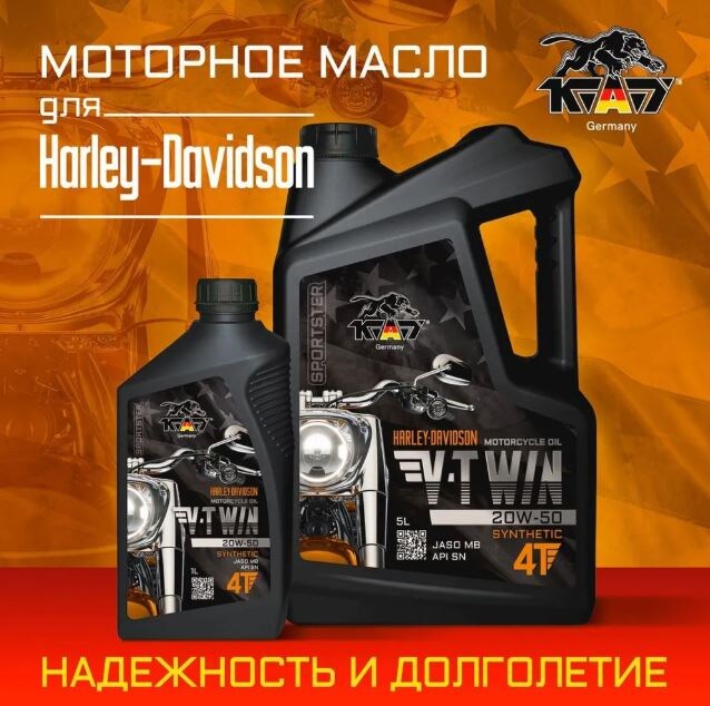 Знаете ли вы, почему на чопперах такие высокие рули? Эта деталь, ставшая визитной карточкой стиля, имеет весьма практический смысл! Говорят, что высокий руль помогал байкерам от натянутого поперек дороги троса – коварного приема, который использовали враждующие группировки и фермеры, защищавшие свою землю от непрошенных гостей. Компания KAT-Lubricants, вдохновленная духом свободы и бунтарства Harley-Davidson, представляет новую линейку трансмиссионных и моторных масел, а также антифриза, разработанных специально для этих легендарных мотоциклов. K.A.T V-TWIN Synthetic 20W-50 4T - синтетическое моторное масло, предназначенное для четырехтактных V-Twin двигателей с раздельной трансмиссией, как с каталитическими нейтрализаторами, так и без них. Его высоковязкая гидрокрекинговая основа обеспечивает отличную защиту от перегрева и сохраняет стабильную вязкость даже в самых сложных условиях. Инновационный пакет присадок в сочетании с наноуглеродными компонентами эффективно защищает двигатель о