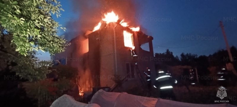 Сегодня ночью под Орлом тушили дачный дом.🚒 Сообщение поступило около 3 часов ночи из СНТ «Союз» в п. Дружный Орловского округа. В региональном МЧС рассказали подробности: к моменту прибытия пожарного расчета горел второй этаж дома и кровля. Существовала угроза распространения огня на соседнюю дачу. На пожаре работали 14 сотрудников МЧС, было задействовано 4 единицы техники. В результате пожара сгорели кровля и второй этаж дома. Предположительная причина пожара - аварийный режим работы электроприборов. (Фото: ГУ МЧС России по Орловской области) @1oblastnoi