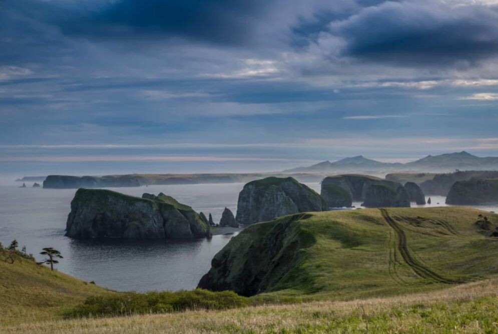 Продолжая своё большое путешествие, 4 октября 2024 года я покинул Кунашир и отправился на вертолёте авиакомпании «Тайга» на остров Шикотан. Этот остров встретил меня своим суровым октябрьским климатом: температура колебалась около +10°C, частые дожди и сильные ветры стали постоянными спутниками. На Шикотане я провёл неделю, участвуя в групповом походе. Каждый день приносил новые впечатления: от прогулок по живописным бухтам до восхождений на холмы, покрытые густыми зарослями бамбука. Особенно запомнилась бухта Безымянная, где снимали советский фильм «Жизнь и приключения Робинзона Крузо». Пейзажи там действительно напоминают Исландию: скалистые берега, туманы и суровая красота природы. Однако, несмотря на всю красоту, поход был не из лёгких. Постоянные дожди превращали тропы в грязевые потоки, а сильные ветры не давали расслабиться ни на минуту. Но именно эти трудности и делали путешествие особенным. Каждый вечер, сидя у костра, мы делились впечатлениями и смеялись над своими приключени