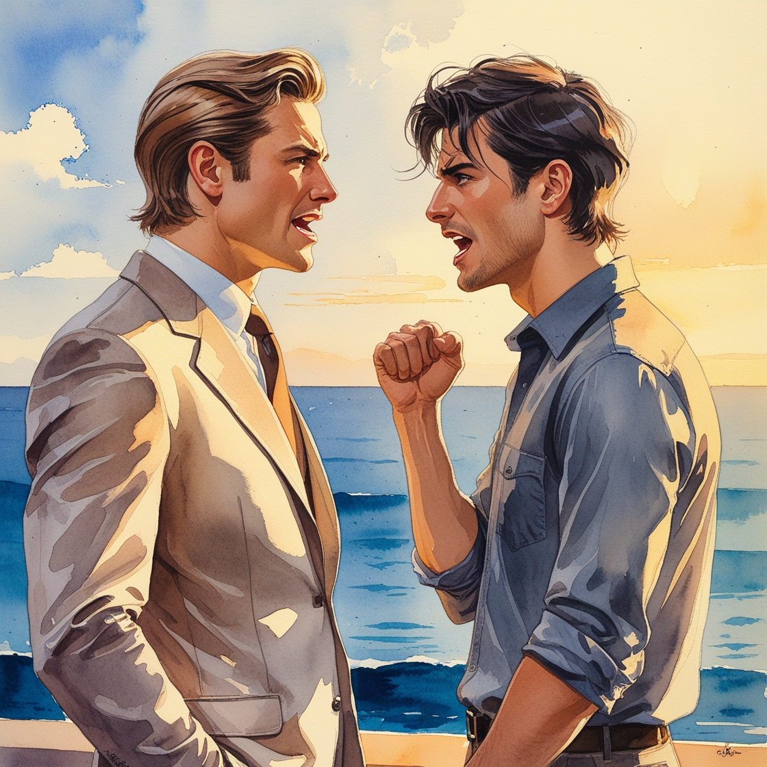 Незнакомец тоже встал. Он был чуть ниже Даниила, но держался с вызывающей самоуверенностью. Он не спешил уходить. Наоборот, шагнул ближе, заложив руки за спину, и что-то произнес. Его поза была провокационной. Лиза видела, как мускулы на спине Даниила напряглись под тонкой тканью рубашки. Он сжал кулаки. На мгновение ей показалось, что он сейчас ударит.
