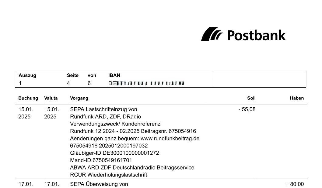 Если разобраться конкретнее, то, как видно из выписки, ты платишь за Rundfunk* ARD, ZDF, DRadio.