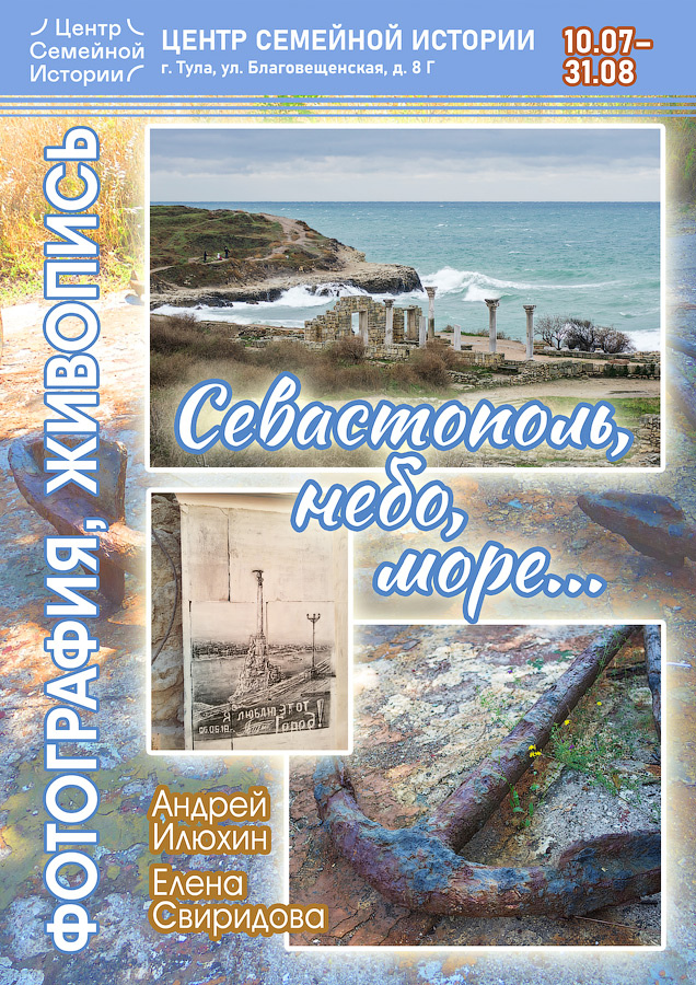 С 10 июля по 31 августа 2025 г. в Центре семейной истории (г. Тула, ул. Благовещенская 8-Г) будет проходить выставка фотографий и картин Андрея Илюхина и Елены Свиридовой, посвящённых городу-герою Севастополю.