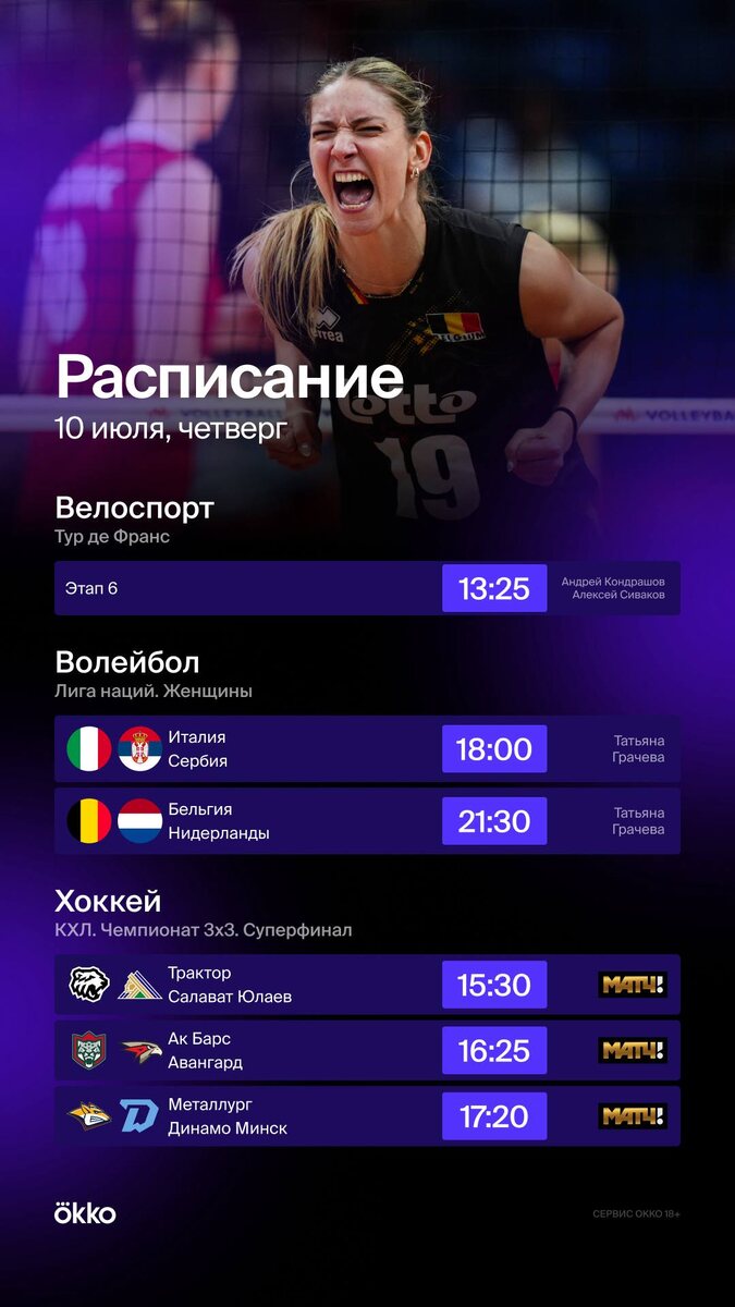 Немного отвлечемся от футбола. В четверг посмотрим «Тур де Франс», волейбол и хоккей 😉