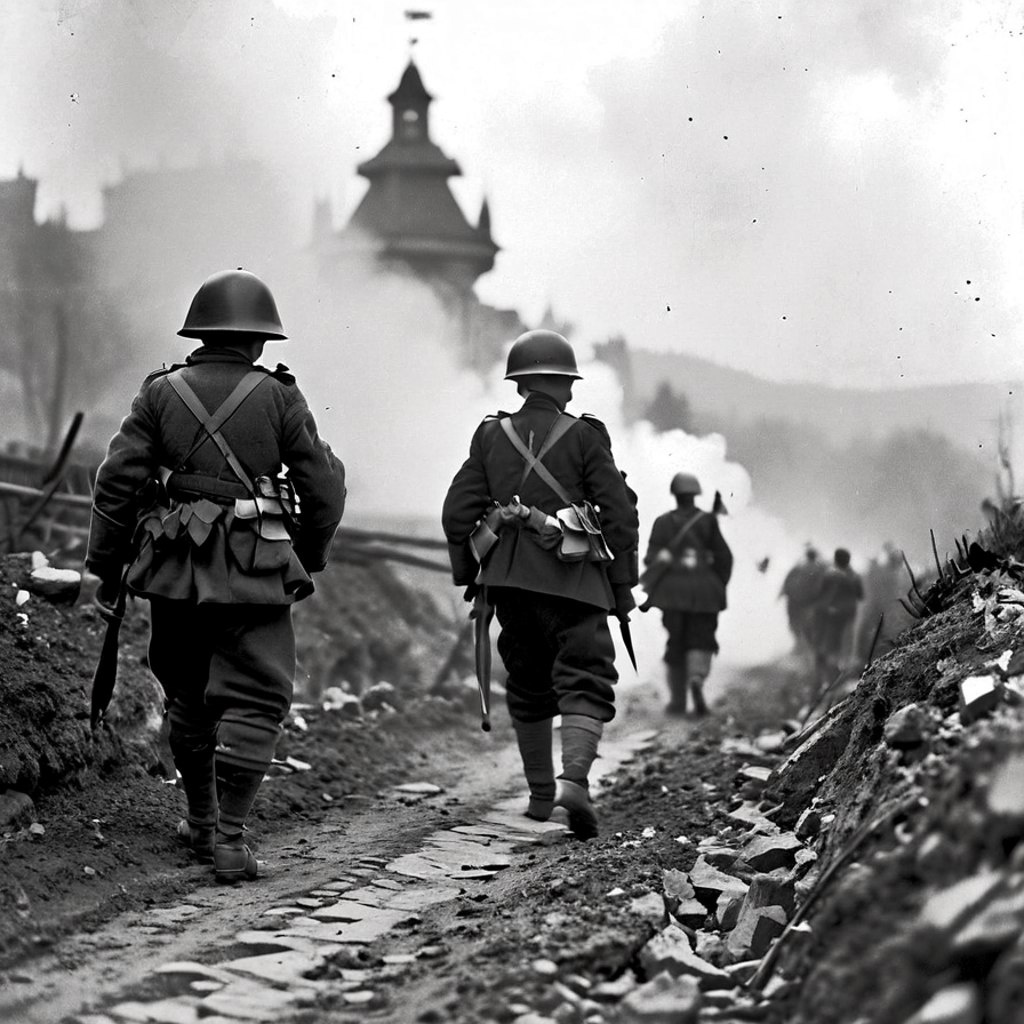 Австро-Венгрия 15 (28) июля объявила Сербии войну. 19 июля (1 августа) Германия объявила войну России, 21 июля (3 августа) — Франции. 22 июля (4 августа) Англия объявила войну Германии. Началась Первая мировая война 1914–1918 годов. С 17 августа по 15 сентября 1914 года первая и вторая русские армии Северо-Западного фронта вели наступление в Восточной Пруссии. Благодаря этому, германские войска потерпели поражение во Франции в Марнском сражении 1914 года. Далее, русские войска оставили Галицию, Польшу, часть Прибалтики (Польша и Прибалтика в то время входили в состав Российской империи). После этого, война перешла в позиционную стадию. В феврале 1917 года Февральская революция свергла власть императора Николая II. Страна оказалась разделена на множество национальных и территориальных образований. В результате Февральской Революции к власти пришло Временное правительство. Однако социально-экономические проблемы в государстве так и не были решены. Крестьяне не имели достаточного кол