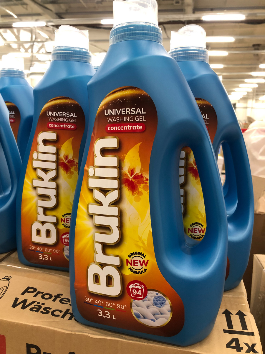 Привезли универсальный гель для стирки белья Bruklin. Объем 3,3 литра. Это концентрированное средство. Предназначено для ухода за различными типами тканей. Я уже опробовала данный гель. Работает на ура! Застирывает даже те пятна, от которых я уже было махнула рукой. Не воняет химией! Запах приятный, после стирки вещи пахнут свежестью. Можно и руками стирать, и в машинке. Никаких вредных фосфатов и парабенов. Всё натуральное, биоразлагаемое. Энзимы и растительные компоненты. Берите не пожалеете. А я точно знаю, что буду брать еще. Изготовитель Беларусь. Цена 347 рублей.
