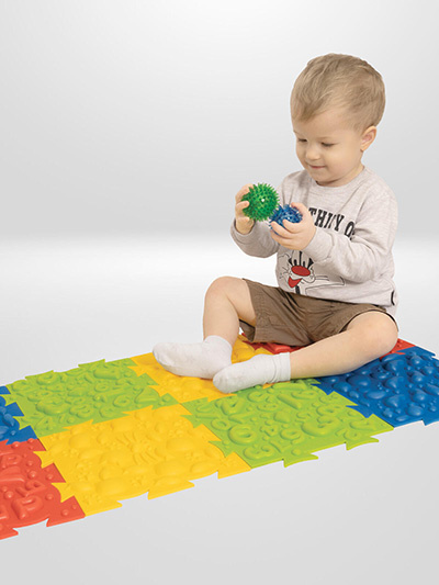 Маленькие непоседы активно познают мир, исследуя все, что попадается на пути. Здоровые ножки — основа их активной жизни. Однако регулярные скучные ортопедические упражнения не всегда увлекают малышей. Сделать занятия интересными и веселыми поможет массажный коврик МК-1. Яркий массажный коврик станет отличным решением для семей с маленькими детьми, школ, детских садов и образовательных учреждений. Многоуровневый рельеф и разный тип поверхности обеспечивают наилучшую профилактику деформаций стопы маленьких растущих ножек и увеличивают эффективность упражнений. А возможность весело проводить время без необходимости прибегать к утомительным однообразным занятиям позволяет снизить риск неправильного развития стопы. Массажный коврик МК-1 разработан с участием ведущих ортопедов. Он учитывает все требования, которые могут быть предъявлены к детским товарам. Износостойкий, экологичный и антиаллергенный материал обеспечивает длительную безопасную эксплуатацию. Сборная конструкция позволяет разм
