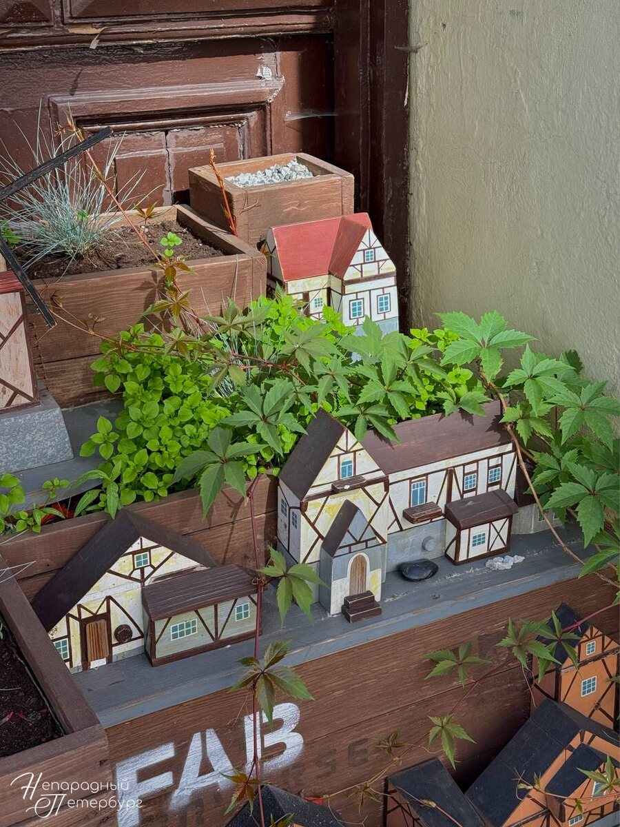 Например, в Банковском переулке у одного из таких магазинов расположился миниатюрный город. Каждый домик в нём уникален, где-то можно увидеть фигурки жителей и фонари.