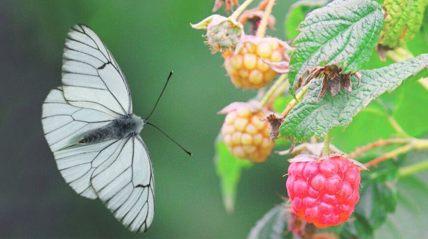 Боярышница – распространенная бабочка, обитающая на участках с малиной, но вам будет приятно узнать, что сама бабочка не представляет угрозы для ваших кустов. Наоборот, она способствует опылению, помогая вашим растениям давать больший урожай. Однако стоит проявлять осторожность с ее гусеницами, которые охотно объедают листья плодовых растений.