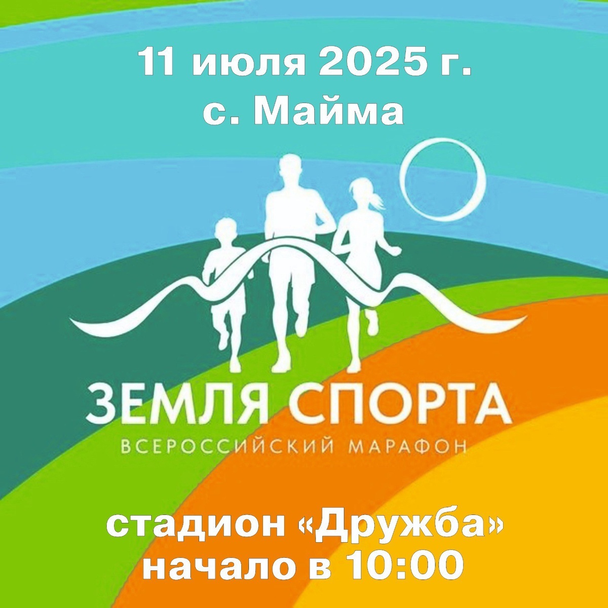11 июля в с. Майма на стадионе «Дружба» пройдёт региональный этап Всероссийского Марафона спорта и здорового образа жизни «Земля спорта». В спортивных состязаниях примут участие команды муниципальных образований Республики Алтай. В программе спортивного мероприятия - волейбол, мини-футбол, силовой экстрим, тестирование ГТО, семейные старты.