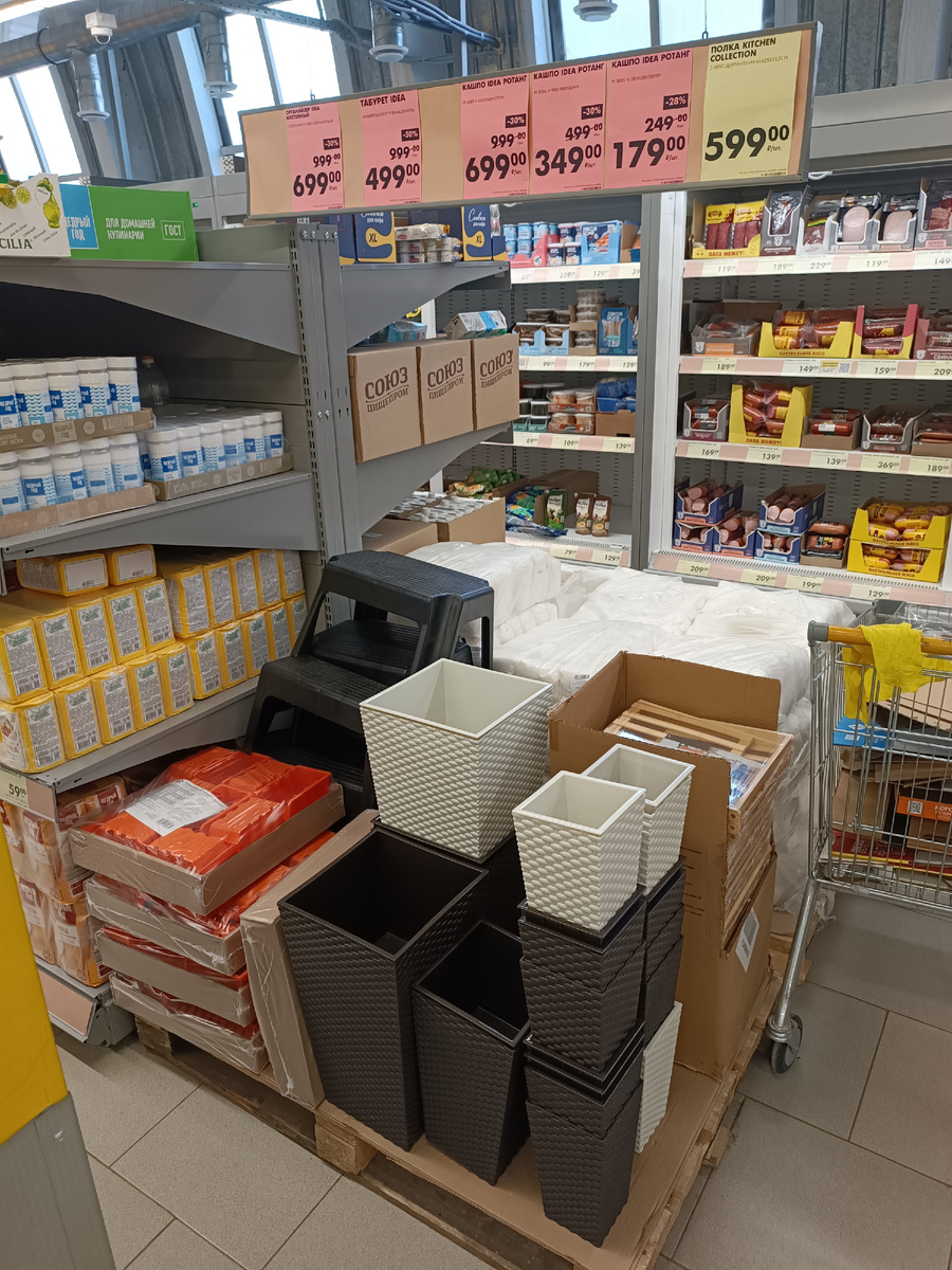 а вот обычный ценник с краю был на эти полки, на них пока нет скидок.